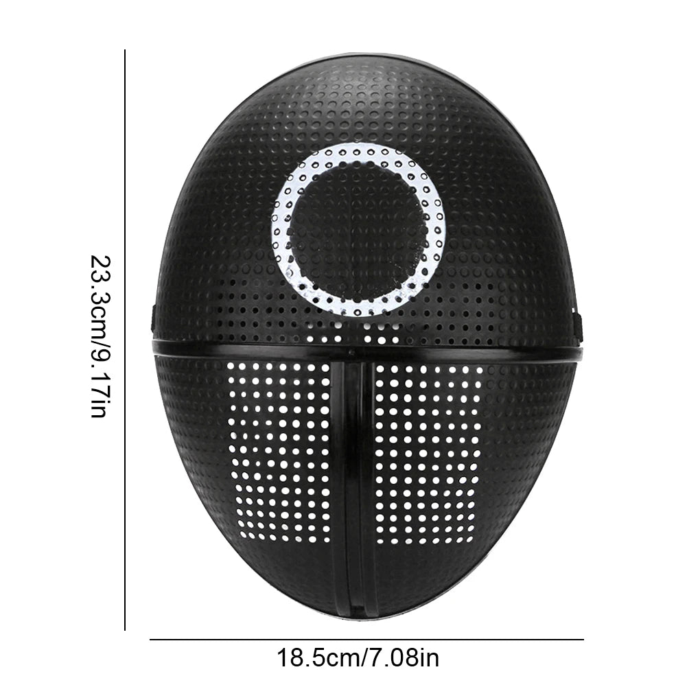 Step into character with this Calamari Game full face cosplay mask, the ultimate accessory for Halloween, themed parties, or cosplay events. Made from durable plastic and designed with comfort in mind, it features an elastic band for a secure fit, allowing you to wear it all night with ease. Perfect for role play, horror fans, or anyone looking to stand out at their next event.